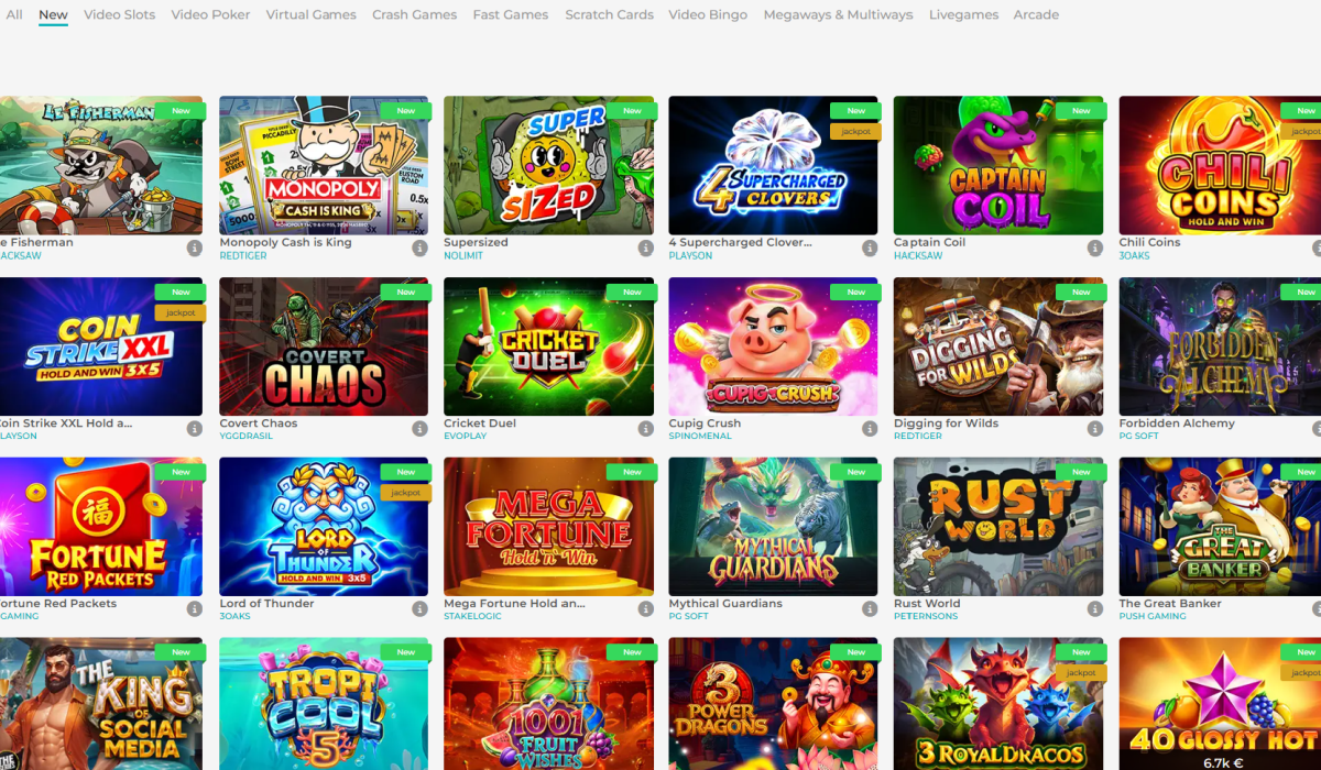 The casino section includes a wide selection of video slots, covering classic formats, modern high-volatility releases, and feature-rich titles such as Megaways & Multiways, which use dynamic reel systems to generate thousands of potential winning combinations per spin. Players looking for more strategy-driven formats can access video poker, while those who prefer instant-result games will find scratch cards, virtual games, and lighter entertainment categories such as video bingo and arcade games.