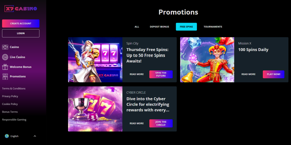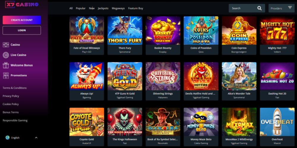 X7 Casino positions itself as a high-bonus, high-volume platform with a modern design and extensive game selection.