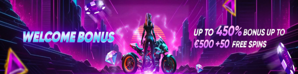 Up to 450% across three deposits plus 50 free spins, with x40 wagering.